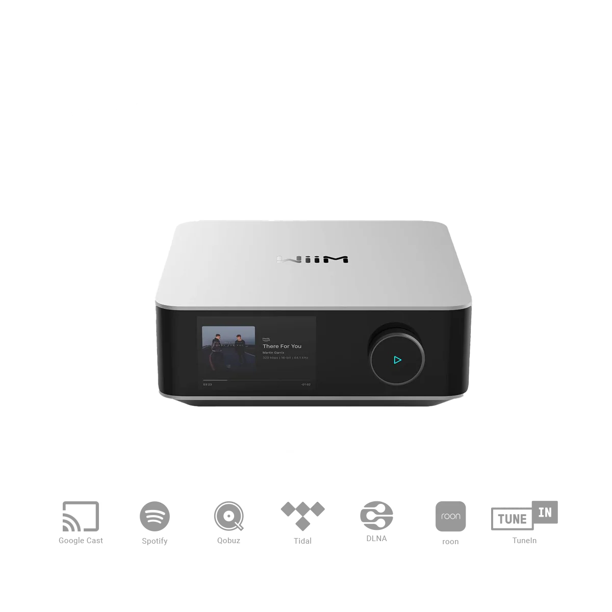 - Streaming/Protokolle: Google Cast Audio, Roon Ready, DLNA, Spotify/TIDAL/Qobuz Connect